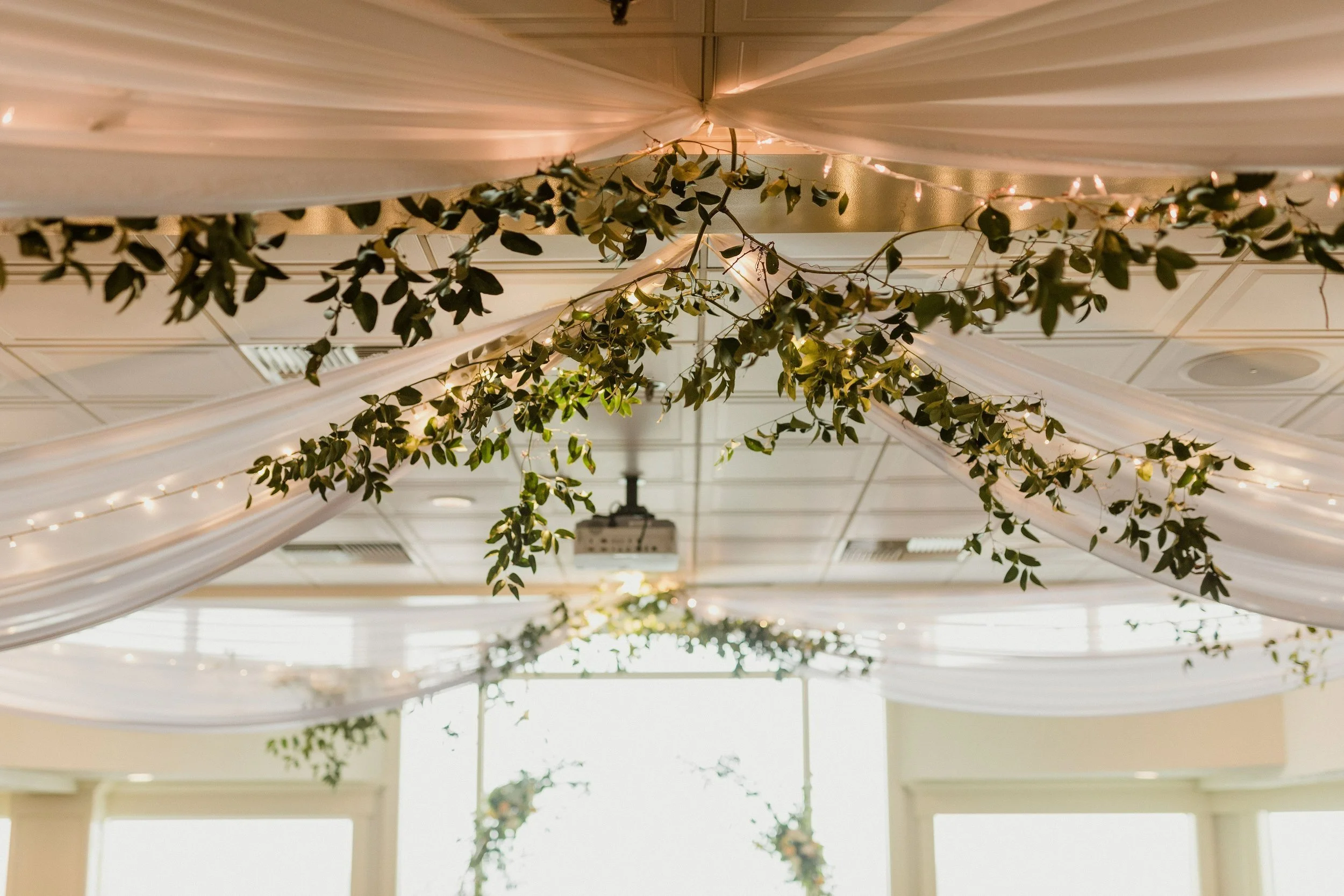 Real & Faux Greenery for the ceiling