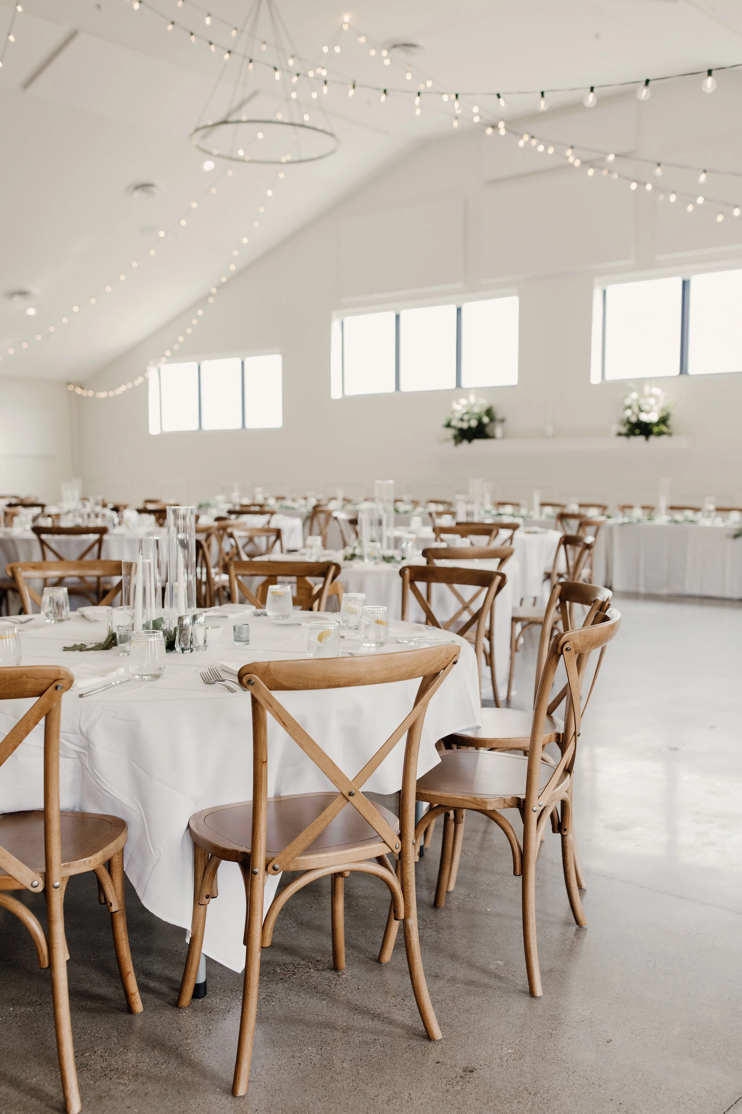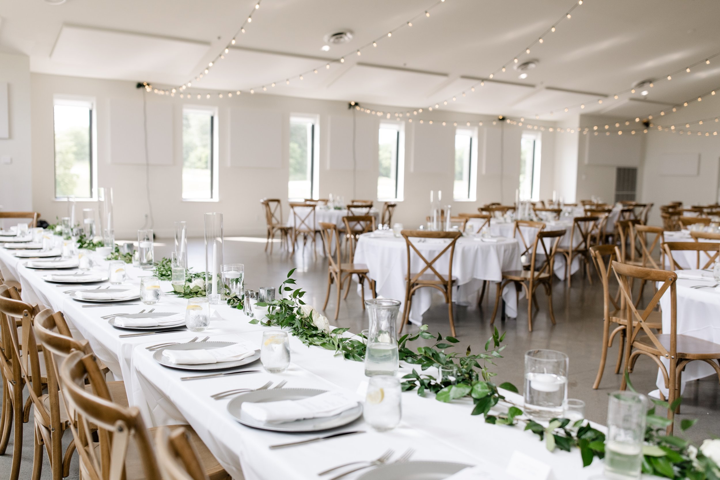 We love when our couples add greenery. and were not just taking about on the tables! We love adding greenery to the cafe lights, chandeliers, and the staircase!